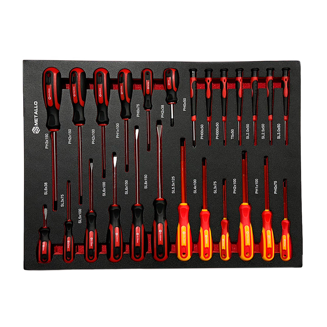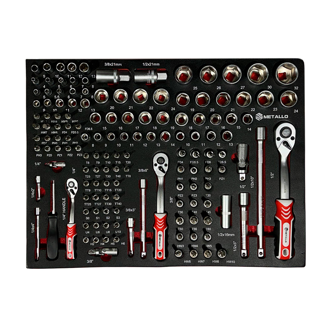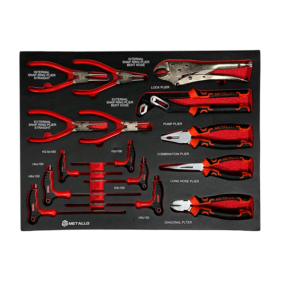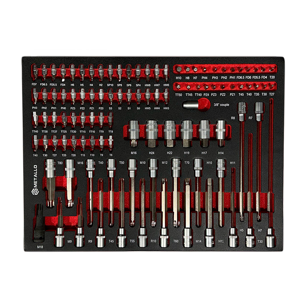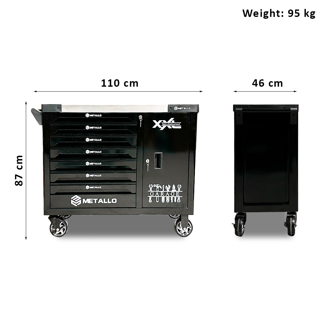 Szafka narzędziowa Metallo 7/7 Pro – 390 elementów to solidna i ergonomiczna szafka warsztatowa wykonana z wytrzymałej stali. Dzięki 7 szufladom wypełnionym kompletem narzędzi stanowi idealne rozwiązanie do warsztatów samochodowych, serwisów technicznych oraz garaży hobbystycznych.