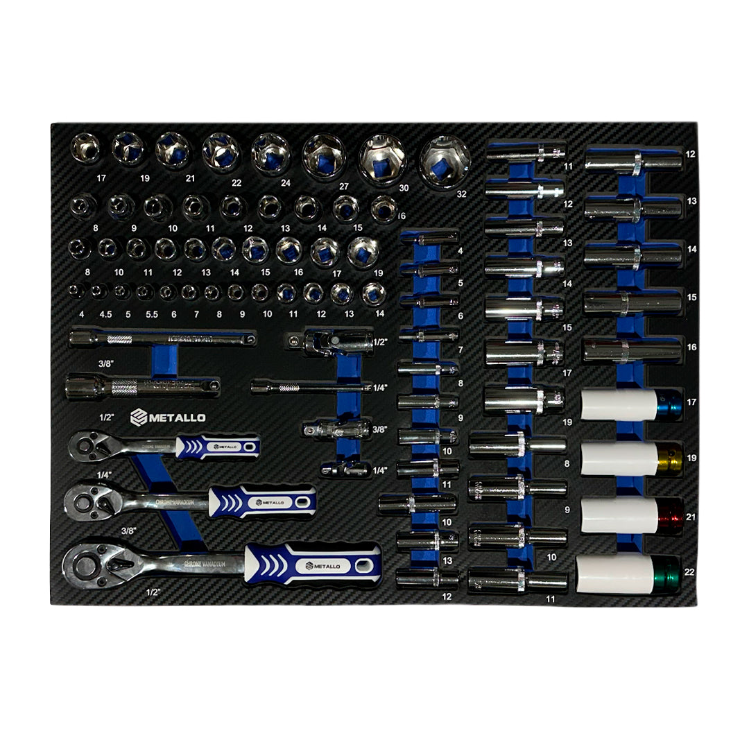 - Szuflada 1 – Klucze nasadowe i grzechotki