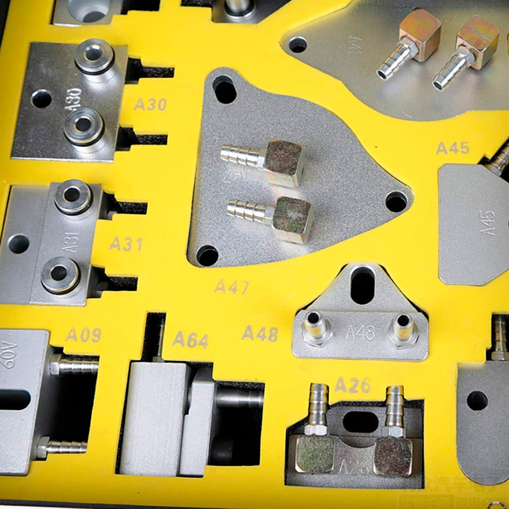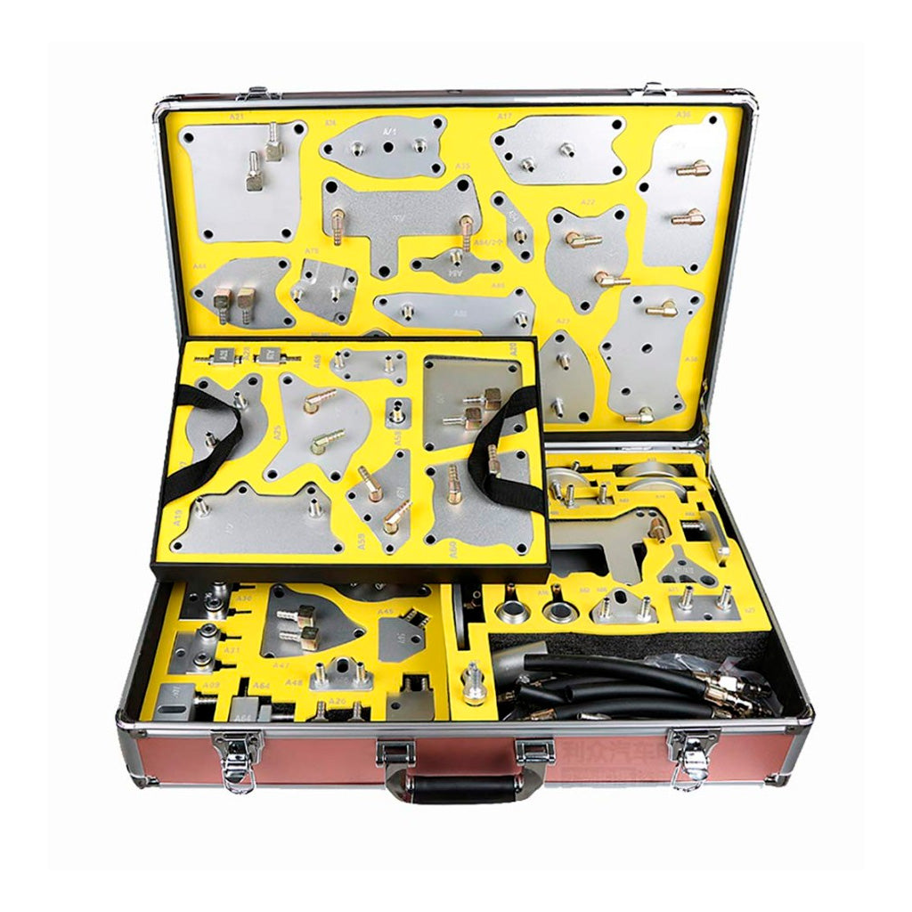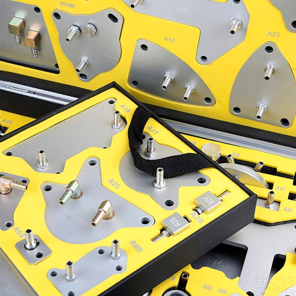 Zestaw AUTOOL to kompleksowe rozwiązanie dla warsztatów zajmujących się serwisem automatycznych skrzyń biegów. Adaptery oznaczone kodami A01–A86 pasują do wielu typów przekładni (DSG, CVT, ZF, TF itp.) stosowanych w pojazdach marek Toyota, BMW, Mercedes-Benz, Volkswagen, Audi, Volvo, Peugeot, Citroen, Nissan, Ford, Mazda, Jeep i wielu innych.